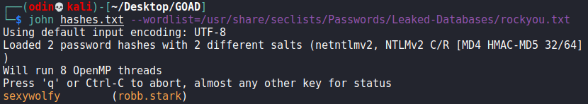 Grabbed all the hashes that were dumped and ran them against John.&#x20;